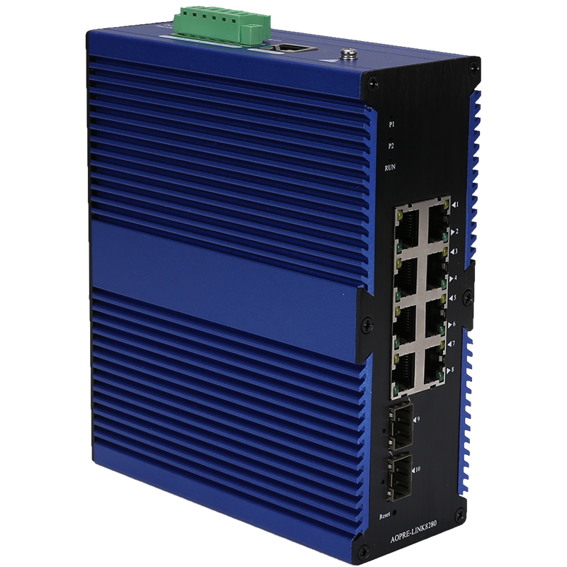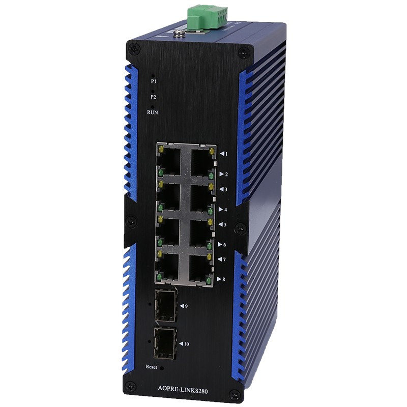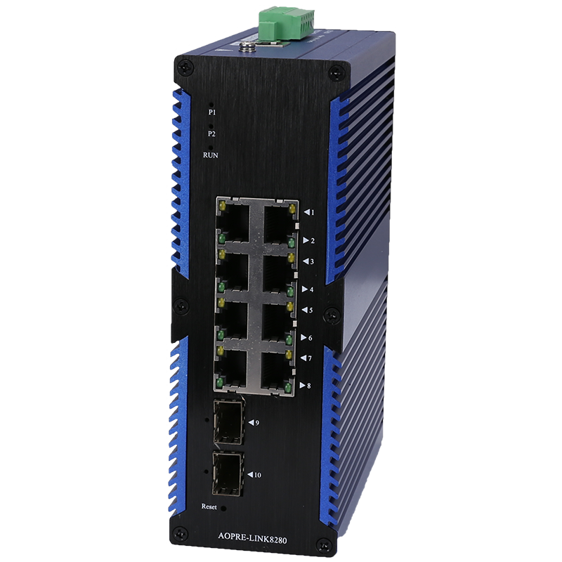 AOPRE-LINK8280 | 2個千兆光+8個千兆自適應電口、SFP接口、DC12-52V供電-寬溫(-40℃-85℃) |